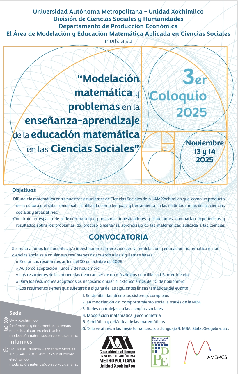 3er Coloquio de “Modelación matemática y problemas en la enseñanza-aprendizaje de la educación matemática en las Ciencias Sociales”