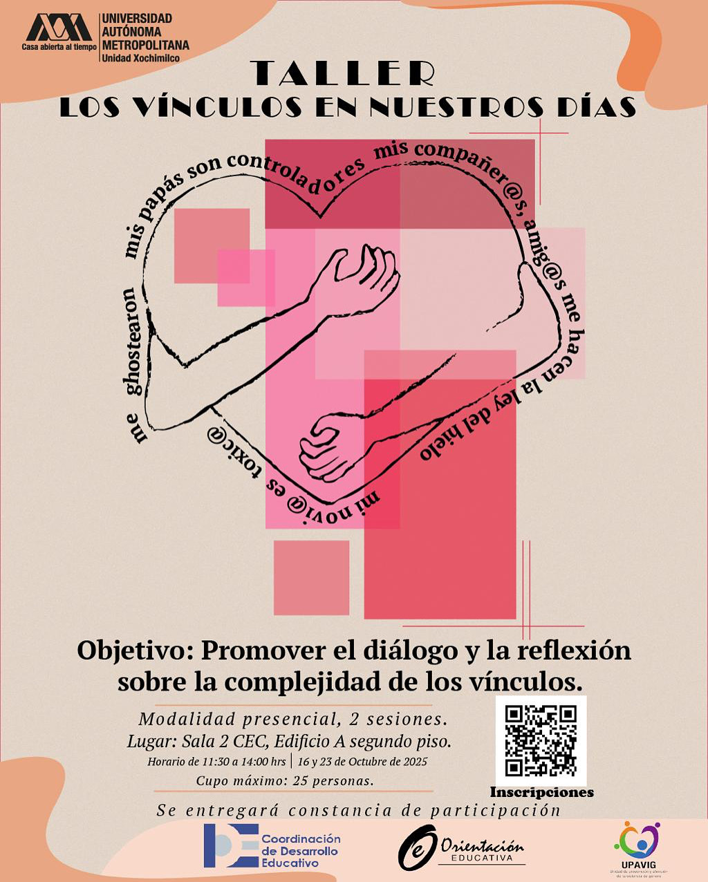La complejidad de los vínculos forma parte de nuestra vida cotidiana, por ello, en este taller reflexionaremos sobre las formas en que nos relacionamos con las y los demás, desde el diálogo y la escucha.