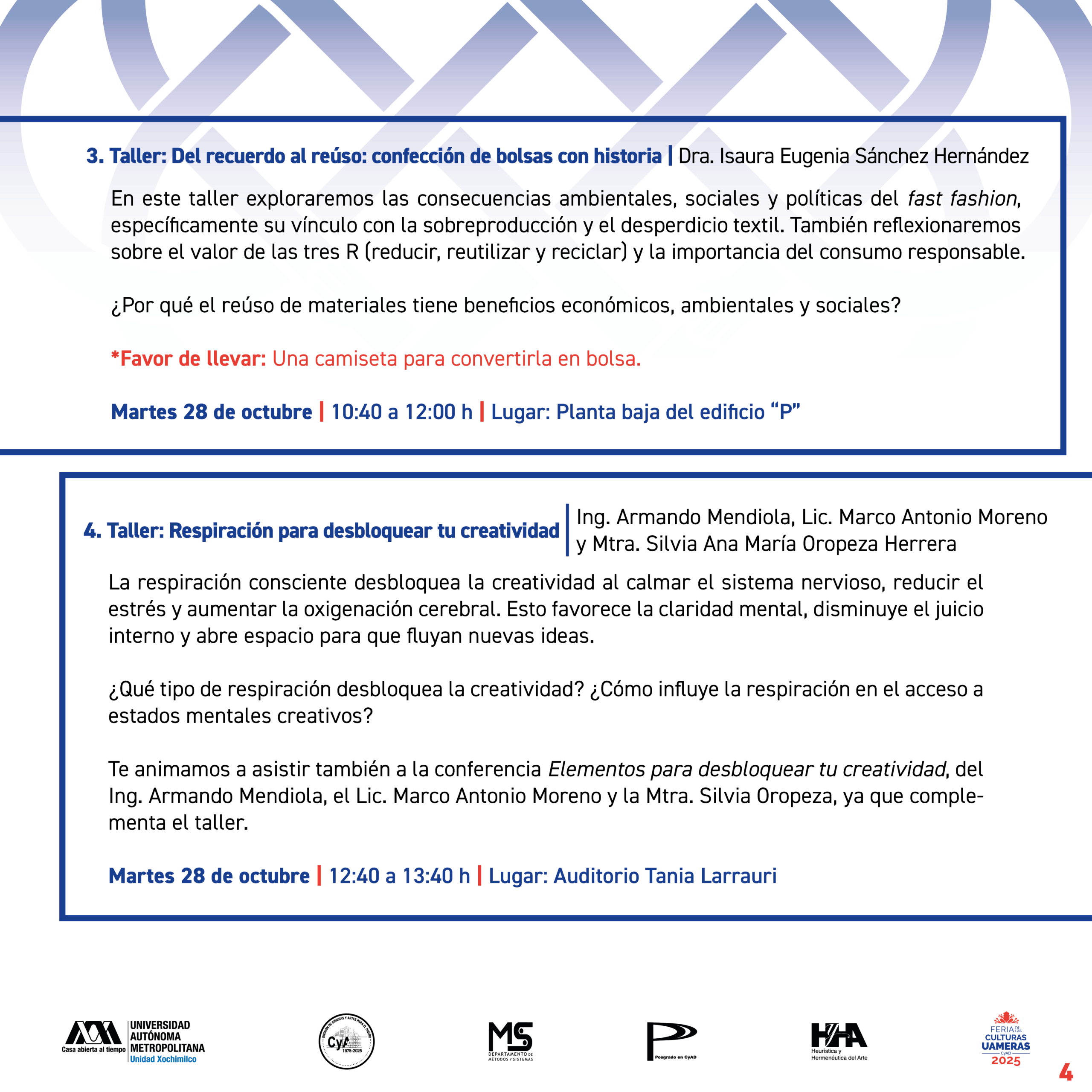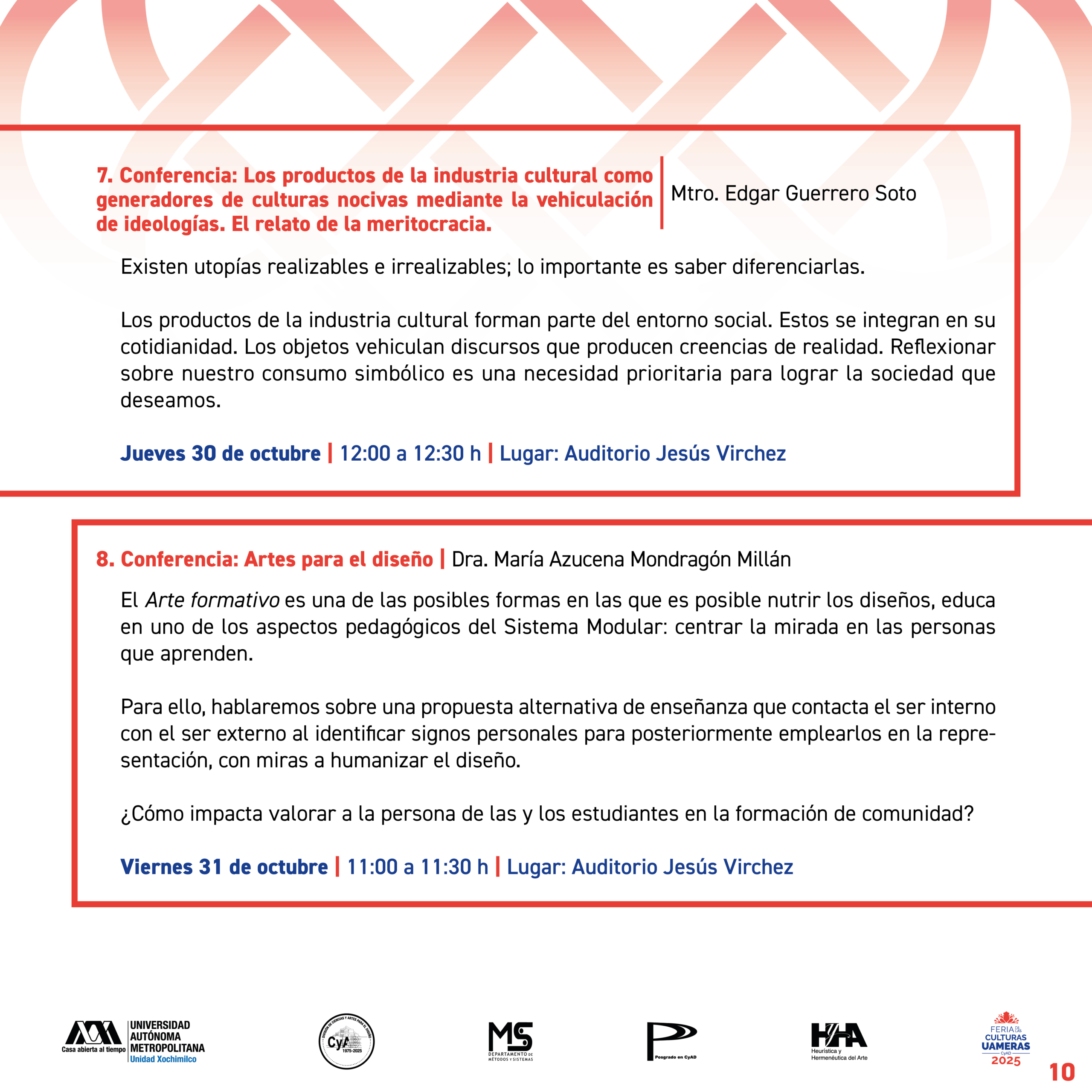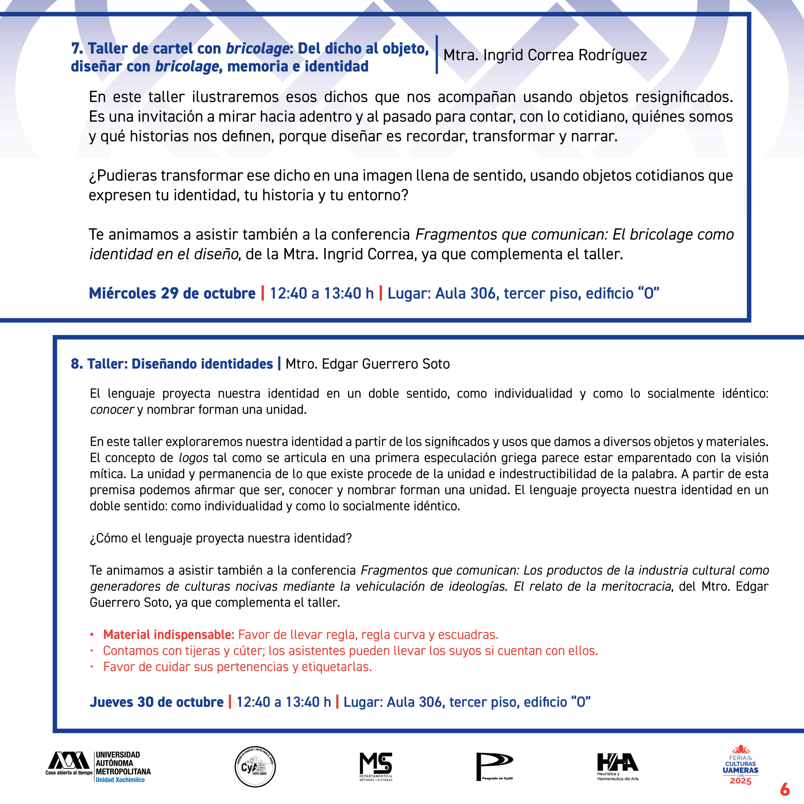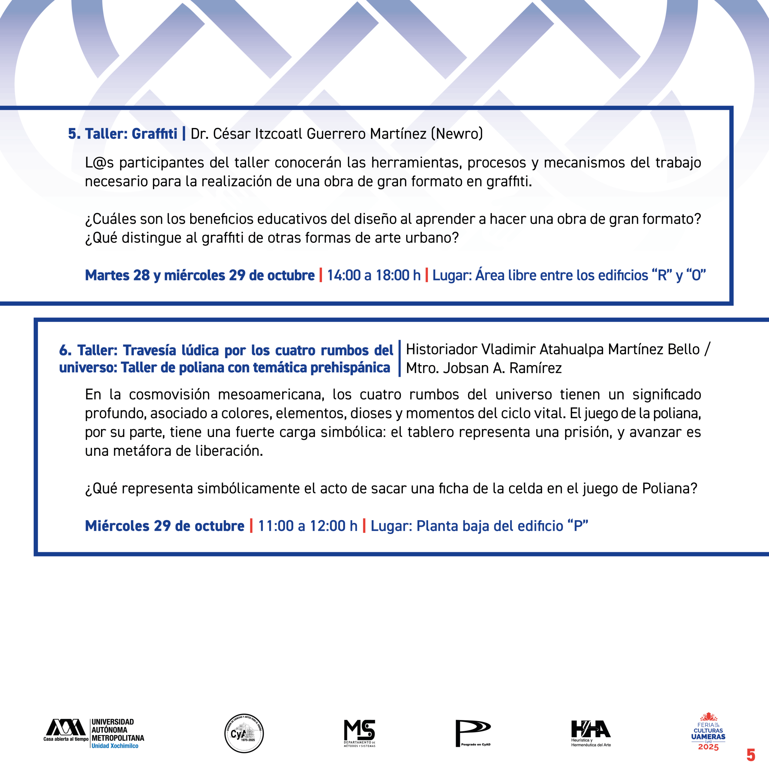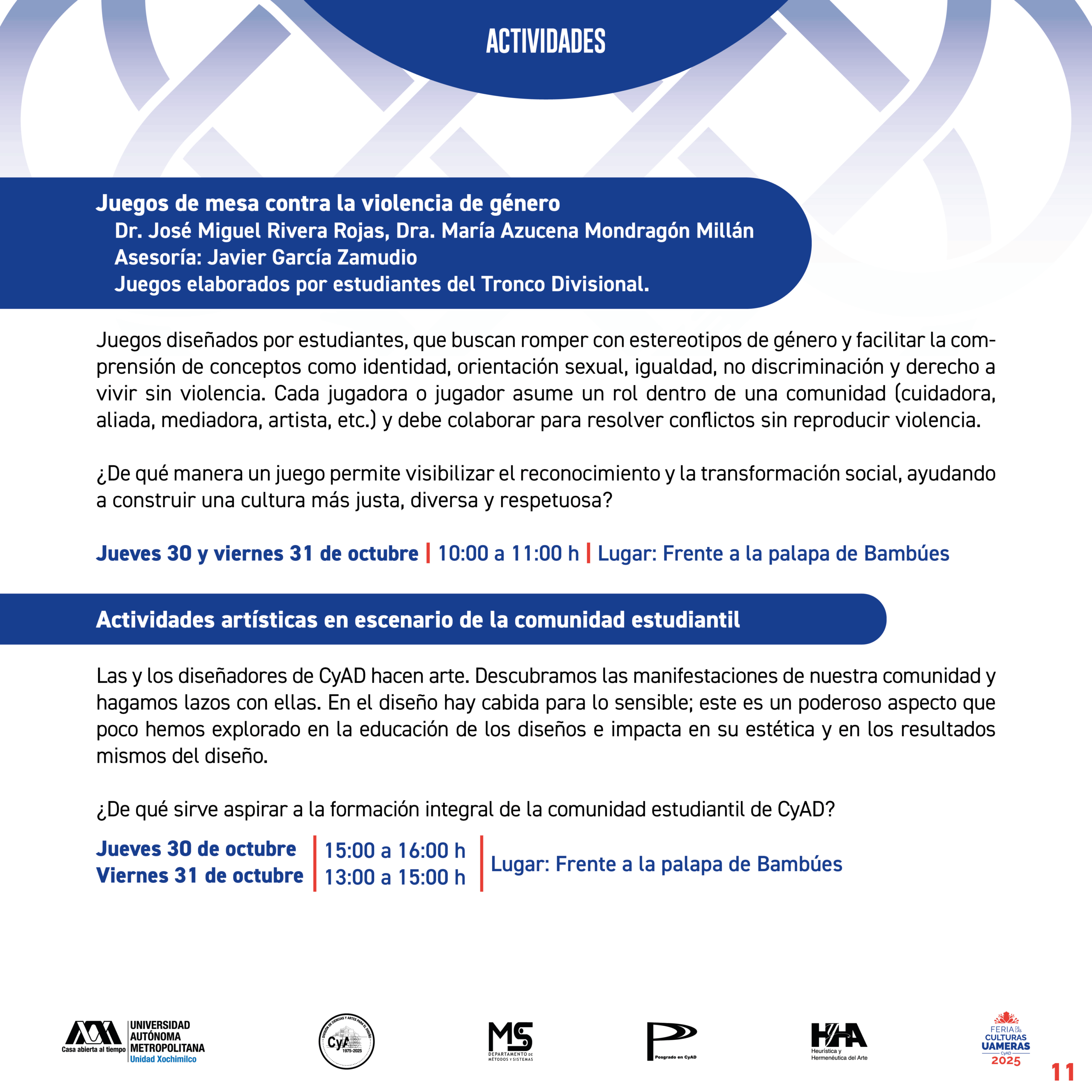 En el marco de la conmemoración por el 50 aniversario de nuestra División de Ciencias y Artes para el Diseño, invitamos a toda la comunidad universitaria de CyAD ser parte de la programación de la Feria de las Culturas UAMeras 2025.